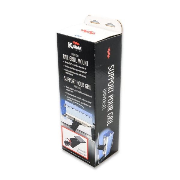 The Universal Single Axis Rail Mount solves many standard mounting problems by allowing you to mount and level your Kuuma BBQ on any angle rail from vertical to horizontal.