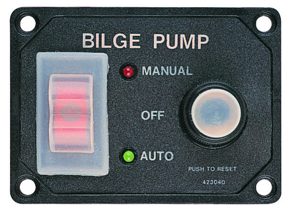 Splash Garde bilge pump switch with circuit breaker is jonction molded ABS for maximum durability and corrosion resistance. Includes 3-way switch allowing both automatic and manual switching of the bilge pump. Red LED ac...