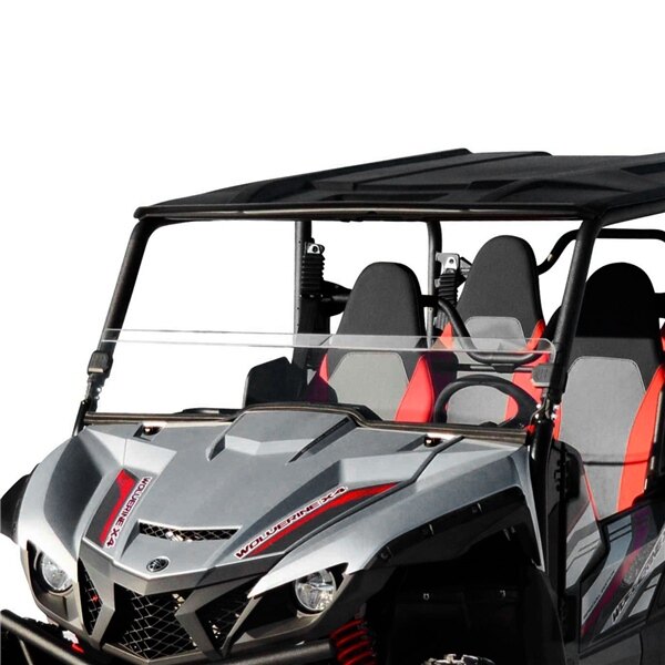 Protects against flying mud and debris Eliminates suction that occurs with a front windshield on its own Made of 1/4” polycarbonate—250x stronger than glass and 25x stronger than acrylic Fits the c...