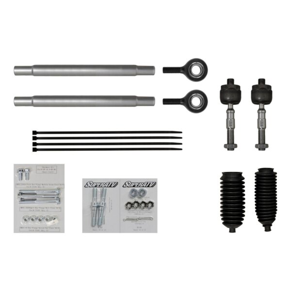Made of 4340 chromoly steel alloy Hardened steel monoball tie rod ends - M14x1.5 threads Stock length replacement Complete tie rod assembly Simple design for a quick, no-hassle install Adju...